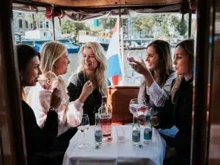 ‘Valerie’ is a classic 90 year old beauty that combines a royal historic atmoshere with all the modern features for a comfortable private canal tour with business partners, co-workers, friends or family. Groups up to 19 people can enjoy drinks and food on board, both indoors and outdoors. If the weather is nice all windows can be removed.